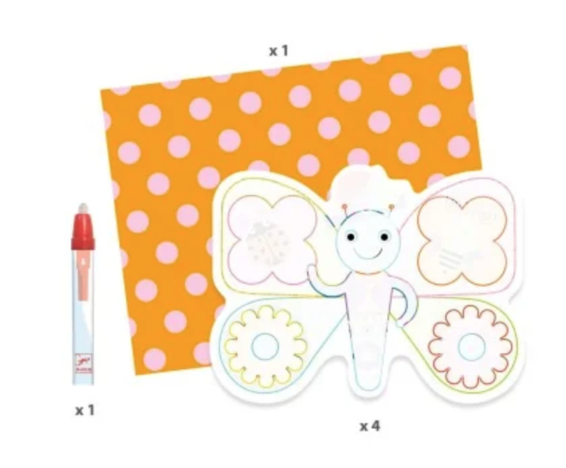 Vul de pen met water. Het kind kleurt en er komen verrassingen te- voorschijn. Wanneer het droog is , kan de activiteit worden herhaald, en dat eindeloos vaak!
