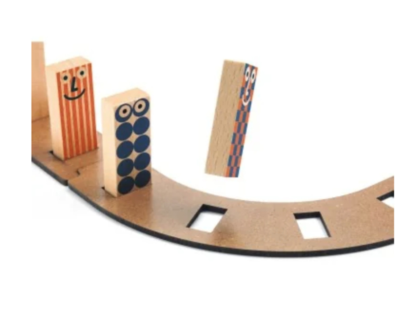 Racer is een houten kettingreactie-, puzzel- en bouwspel voor kinderen vanaf 5 jaar. Het kind volgt de 3 modellen in het boekje om een parcours te maken of bedenkt zelf oneindig veel andere combinaties. Prachtige inhoud met grappige Zig-domino's die poppetjes voorstellen. Dit spel is kan gecombineerd worden met alle andere dozen uit de collectie om nog meer ingenieuze actie-reactie parcoursen te creëren!