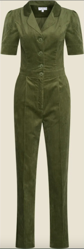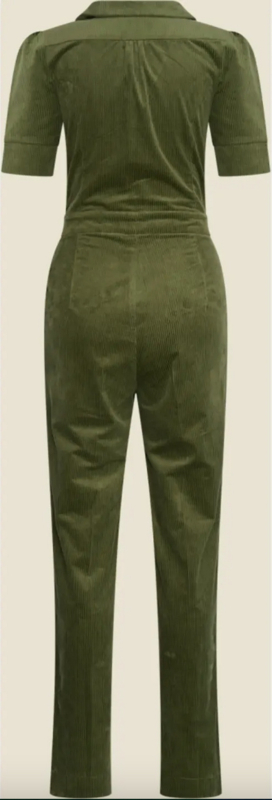 Ons welbekende broekpak nu in een heerlijke corduroy variant, in prachtig warm groen. Dit prachtige olijfgroene pak met een rib draagt heel comfortabel en oogt heel vrouwelijk. Dit broekpak heeft een knoop- en ritssluiting voor en de iets toelopende broekspijpen hebben een gestikte vouw aan de voorzijde. Draag het pak met pumps, sneakers of laarsjes en je zult zien hoe veelzijdig dit broekpak is. Ook leuk met een blouse of coltruitje eronder.