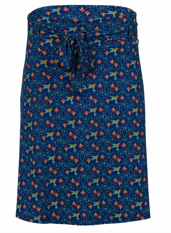 De Demi Skirt heeft een hoge taille en een strikceintuur die door lussen op een klassieke A-lijn silhouet loopt. Deze rok is nu ontworpen in samenwerking met Hummingbird en brengt de intense kleuren van de natuur en het comfort van ECOVERO™ Viscose naar je garderobe.