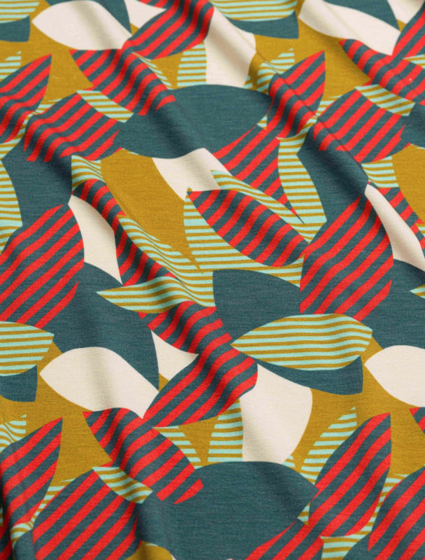 De Roxy-jurk is gemaakt van ECOVERO™ viscose jersey, afgewerkt met de retro print 'Leave' en heeft een A-lijn rok met strikceintuur, een zachte V-hals en omgeslagen mouwzomen – een eenvoudig maar krachtig kledingstuk voor in je garderobe.