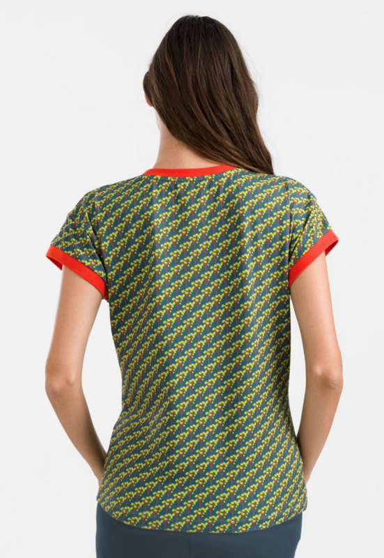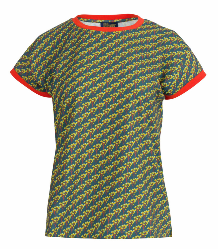 De April Top is gemaakt van elastische biologische katoenen jersey met een 'Love for Nature'-print en heeft een ronde halslijn met contrasterende biesjes bij de hals en mouwen, wat zorgt voor een frisse, speelse look.