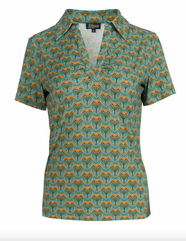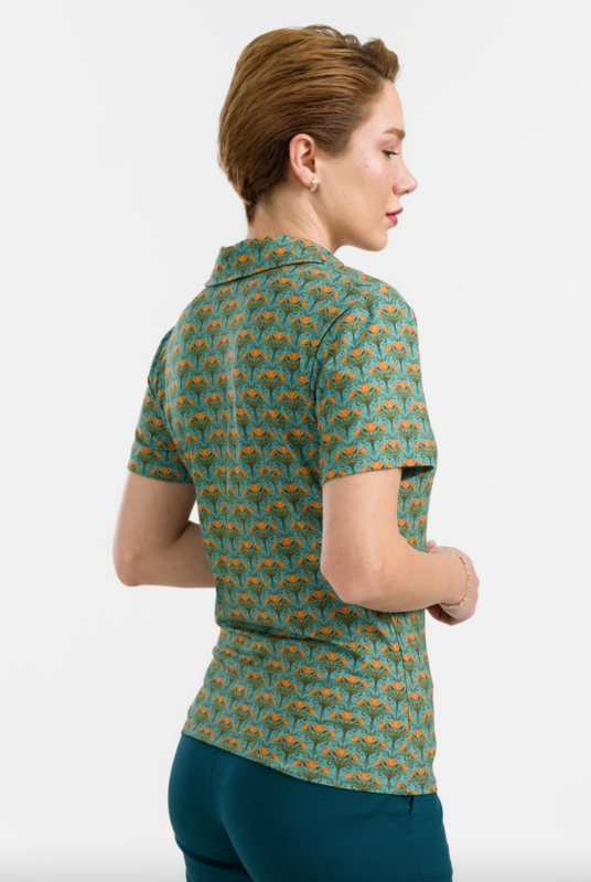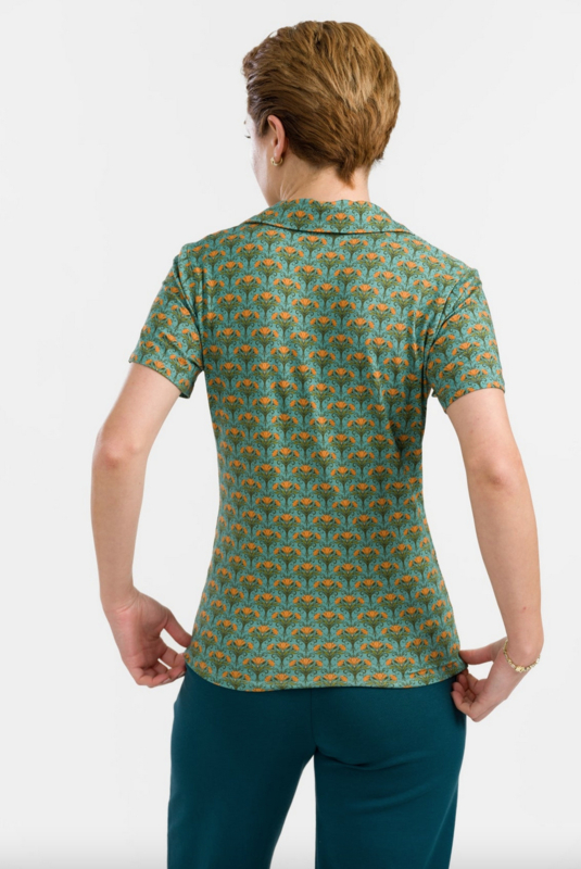 De plooien op de borst en de mooi gevormde platte kraag - de Suzy Top is nu opgeleukt met de Blooming-print in de zachte ECOVERO™ viscose jersey.