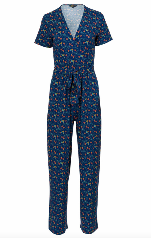 De Diana jumpsuit is gemaakt van elastische ECOVERO™ viscose en uitgevoerd in onze nieuwe kolibrieprint. De jumpsuit heeft korte mouwen en een dubbele V-hals met een strikceintuur.