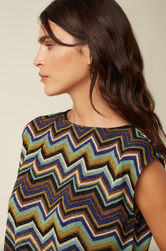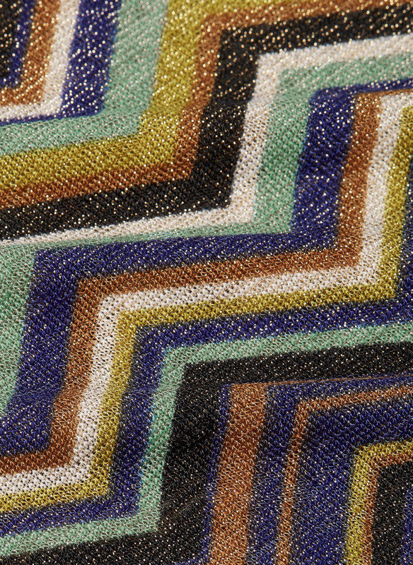 71% polyester, 24% Metallic, 5% Elastaan