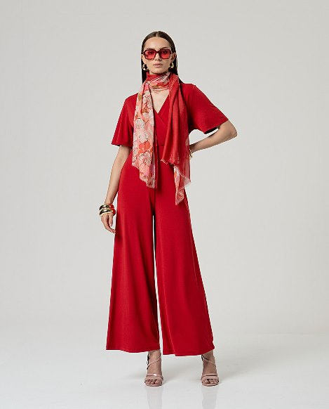 Surkana Cross Neck Jumpsuit-Red 516HIRO811