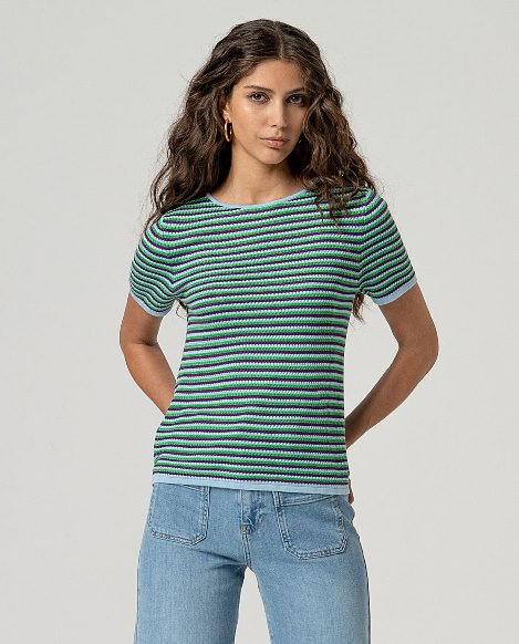 Surkana Striped Short Sleeve Sweater-Sky Blue 516HIDO232