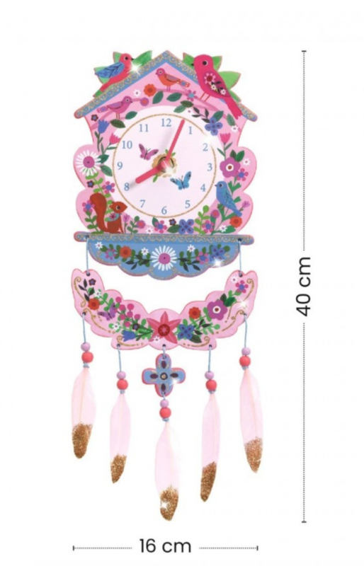 Een creatieve set om een klok in elkaar te zetten en te versieren met meer dan 100 transferstickers en accessoires. Een mooi decoratief voorwerp dat de tijd aangeeft.