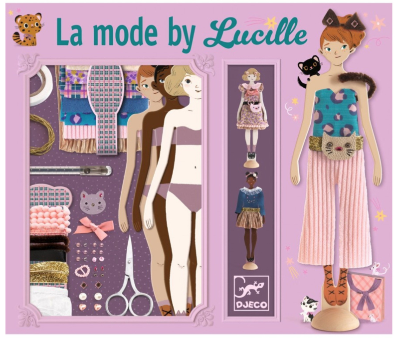 Een doos die aan alle verwachtingen van stylisten in spe te voldoen, zonder dat ze moeten weten hoe ze een naald moeten vasthouden, noch zichzelf tevreden moeten stellen van creaties gemaakt van gesneden papier. Dankzij de echte stof kan het kind zich laten leiden door de uitleg, de patronen volgen en de elementen vervolgens op eenvoudige manier in elkaar te zetten, zonder te moeten naaien. Het kind moet enkel nog de outfits voorzien van verschillende accessoires en kan vervolgens zijn modellen tentoon stellen op de poppen die rechtop blijven staan!