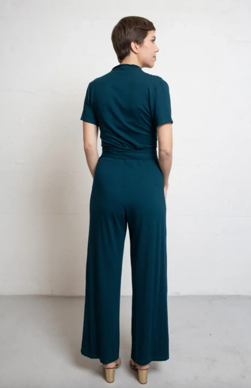 Prachtig jumpsuit met een overslag op het aangesloten lijfje, bijpassend strikceintuur in de taille en mooie wijde broekspijpen. Het Emmylou pak heeft een vrouwelijke pasvorm, en is gemaakt van hoogwaardige kwaliteit viscose tricot met stretch.