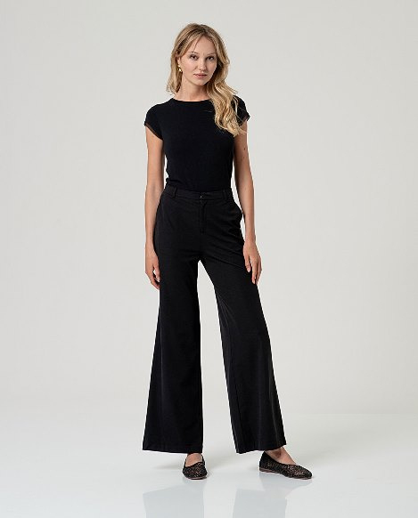 De Taylor Pants van Very Cherry is een prachtige, stijlvolle pantalon met wijde broekspijpen. De broek heeft een tailleband met ritssluiting en knoop, en een pintuck aan de voorzijde. Je…€ 109,95