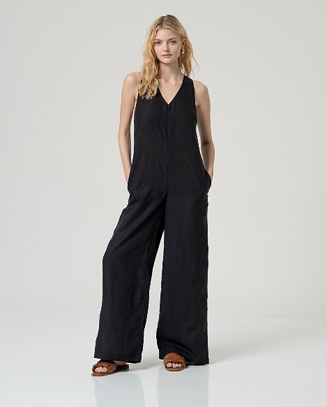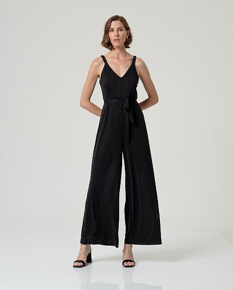 Surkana Wide Strap Jumpsuit With V-Neck-Black 526NAPE827Surkana Wide Strap Jumpsuit With V-Neck- Black